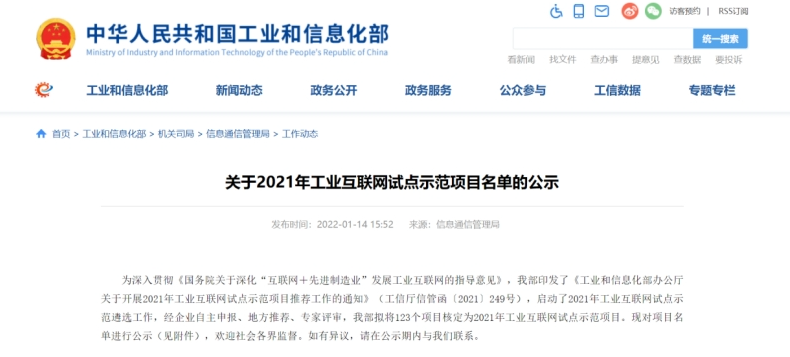 安恒信息成功入选工信部2021年工业互联网试点示范项目名单
