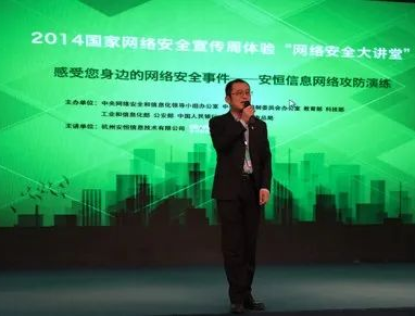 2014年,国家举办首届网络安全主题宣传活动,安恒信息现身国家网安周。在启动日首场“网络安全大讲堂”上,安恒信息技术专家为公众带来现场网络攻防演练并做主题演讲。讲解在当今互联网生存环境下,企业和个人如何应对各种手段的攻击。