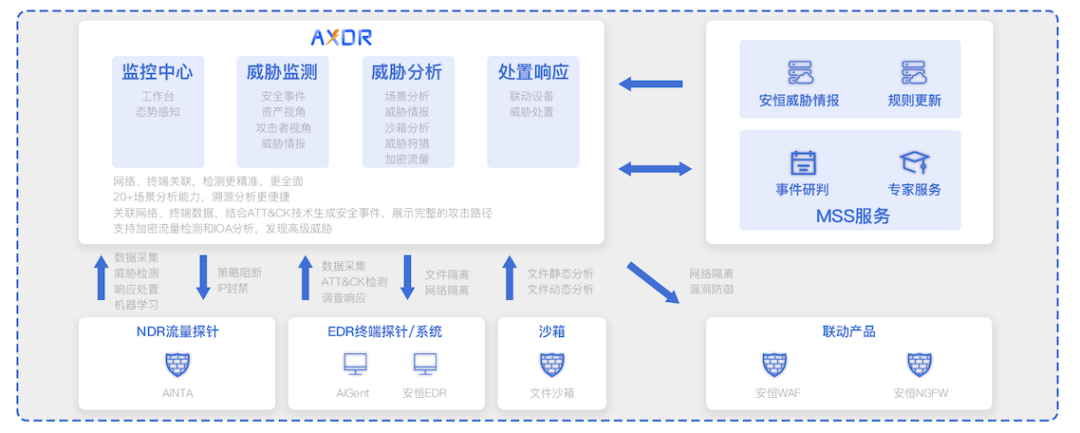 AXDR(AiLPHA XDR,AiLPHA高级威胁检测与分析系统),是基于安恒信息的威胁检测和数据分析能力,构建的一种跨多个安全层收集并自动关联信息以实现快速威胁检测和事件响应的解决方案。