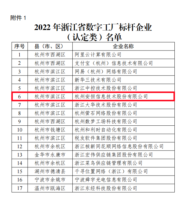 实力认证!安恒信息入围浙江省数字工厂标杆企业