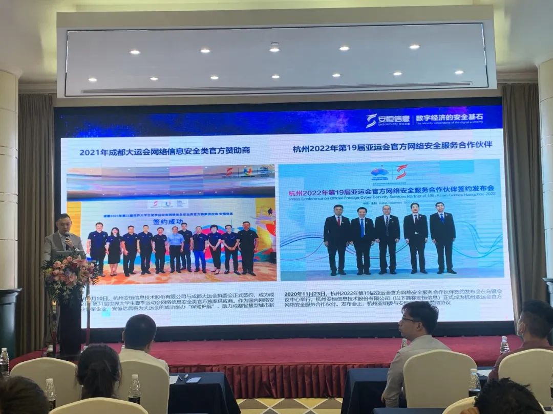 作为网络安全行业的领跑者,安恒信息为国际大型赛事提供了一系列网络安全解决方案和优质服务。此次昆明站活动,安恒信息市场部高级总监于成龙介绍,安恒信息将为杭州2022年第19届亚运会、成都第31届世界大学生运动会的成功举办保驾护航,同时也将开启“闪耀百城行 助威中国赢”合作伙伴激励活动,组建观赛助威团,现场见证精彩赛事,一起为安恒加油,为中国加油!