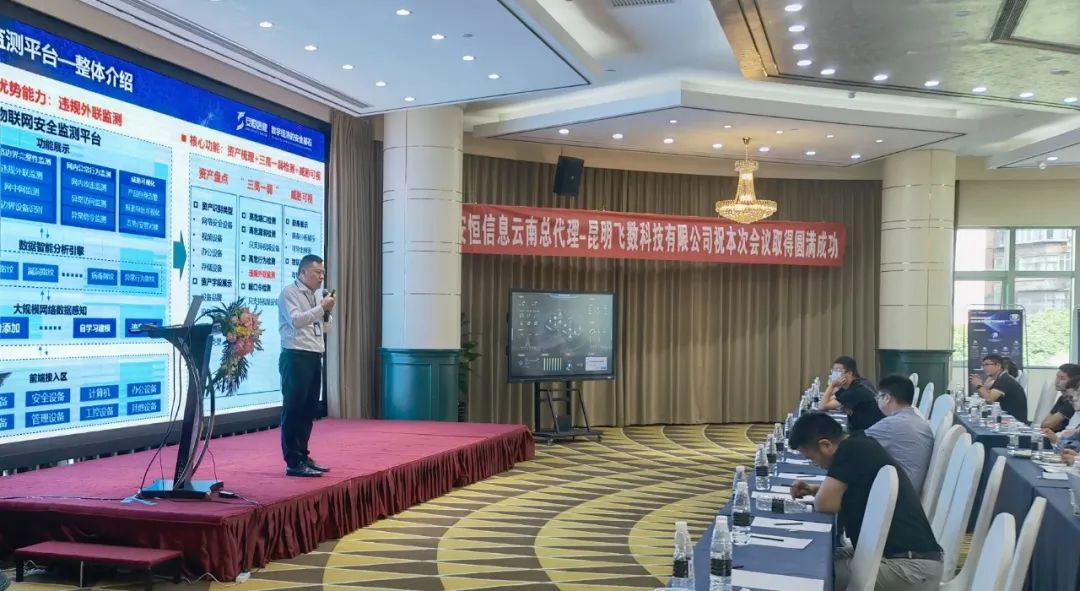 安恒信息物联网安全产品部高级产品经理武进,向云南的合作伙伴同步了安恒物联网安全解决方案,介绍了在云南省以及全国其他省份的落地案例和客户使用情况。产品经理深入浅出的讲解得到了合作伙伴的一致认可,纷纷表示云南省可以大范围去拓展和使用安恒物联网相关产品,以此解决用户物联网安全痛点。