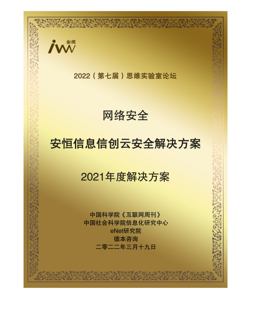 日前,中国科学院《互联网周刊》成功举办2022年思维实验室论坛颁奖典礼,重磅发布了年度人物、企业、品牌等权威榜单,安恒信息信创云解决方案凭借其专业的技术优势和服务能力,成功入选2021年度解决方案。