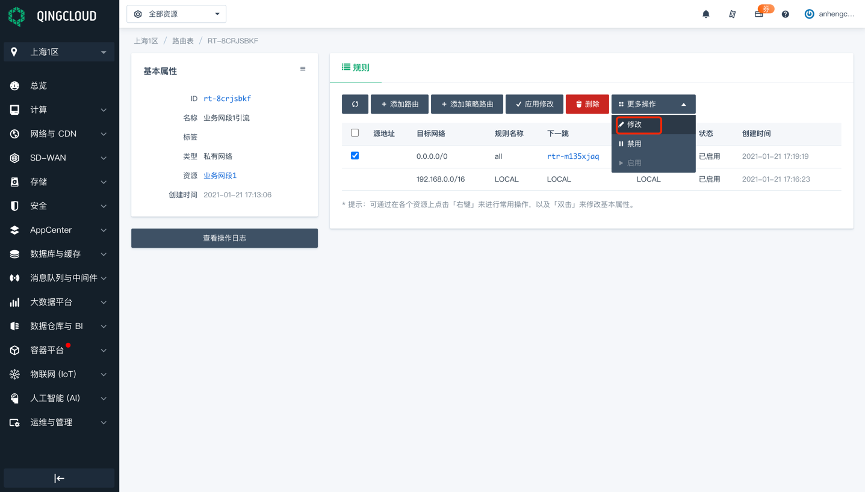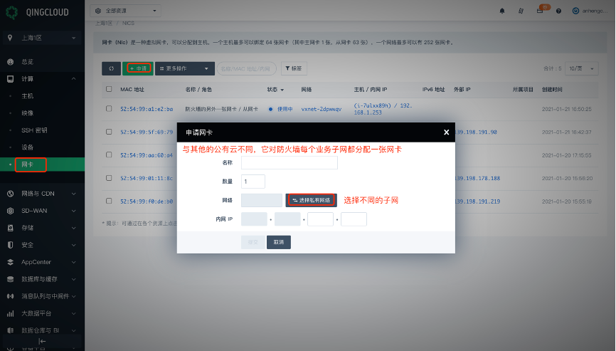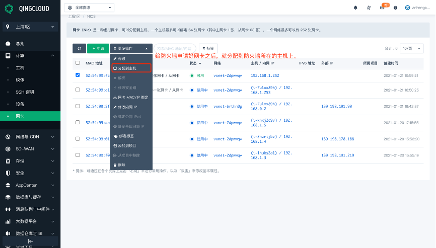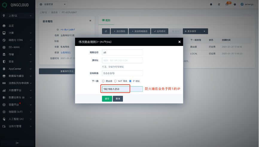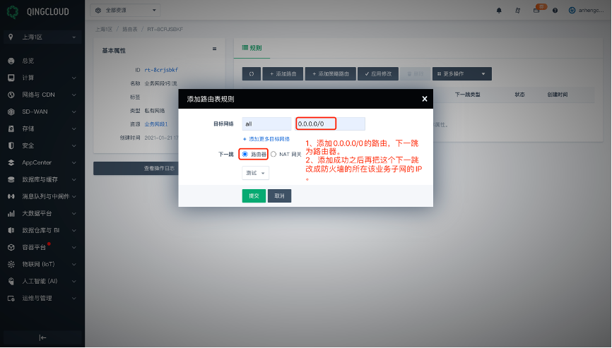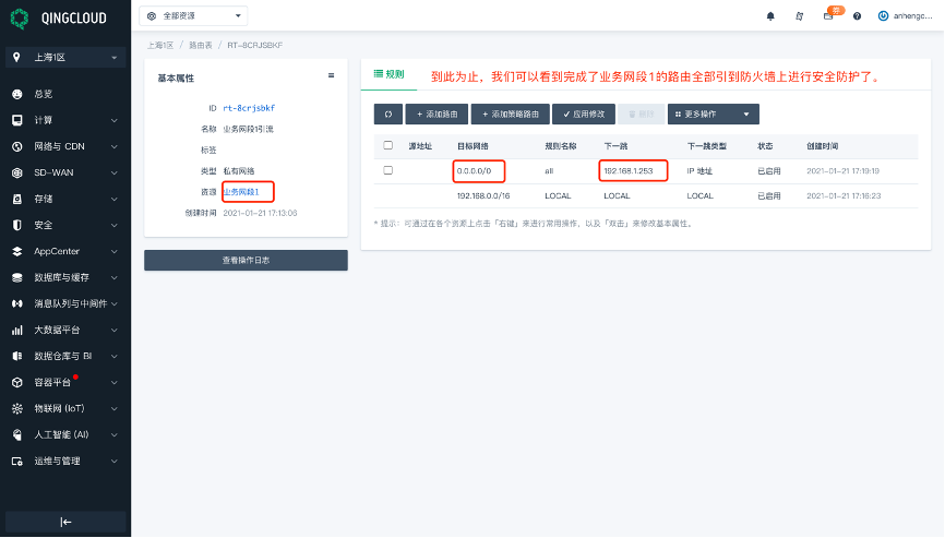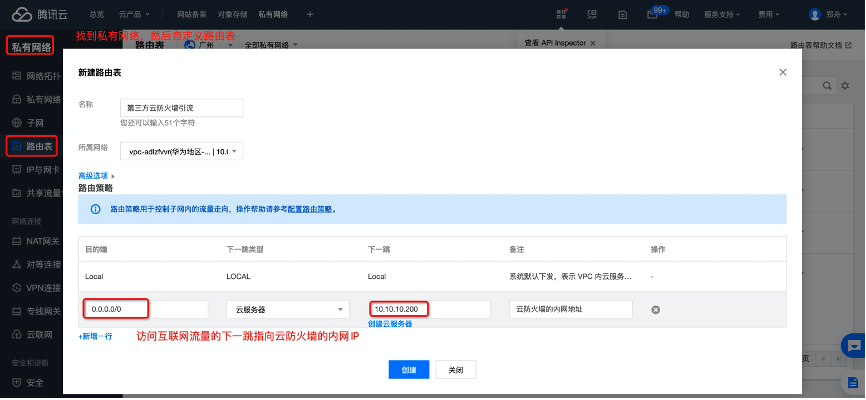 在青云上做云防火墙的引流相对其他云会复杂一些,下面附详细截图,对引流每个步骤作出说明。