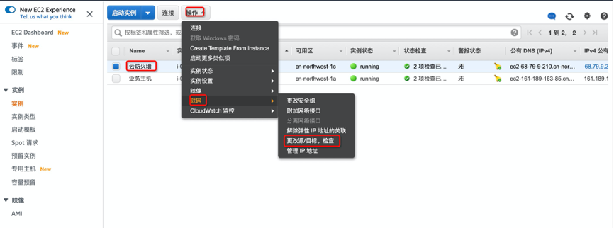 AWS云引流操作关键截图