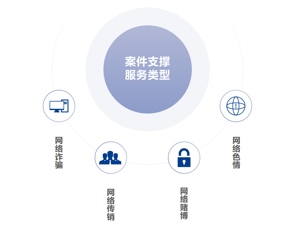 涉网犯罪侦查打击支撑平台,采用云端SaaS化服务模式,将互联网情报和安服力量整合为一体,向公安机关提供工具支撑、案件线索等,实现对涉网犯罪整体案件的“专业评估、高效分析、简单协作”。