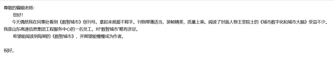 随着《数智城市》期刊创刊和第二期全面发布,我们陆续收到了各方发来的宝贵反馈邮件,有客户的表扬、有用户的索阅、也有专家希望投稿贡献智识,效果好到我们必须保质保量、快马加鞭赶制第三期。