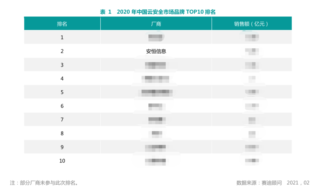 ▲ 2020年中国云安全市场,安恒信息排名第二