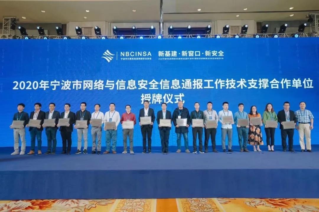 会上,授予安恒信息“2020宁波市网络与信息安全信息通报工作支撑单位”称号,公司代表上台接受授牌。