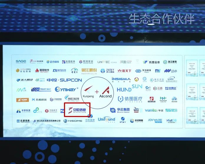 2020年4月21日,普天鲲鹏产品发布暨浙江省鲲鹏生态创新中心、浙江大学滨江研究院揭牌仪式在杭州高新区(滨江)东方通信科技园举行。会上,浙江省鲲鹏生态创新中心正式成立,安恒信息以鲲鹏生态合作伙伴亮相,携手鲲鹏共铸网络安全新生态。