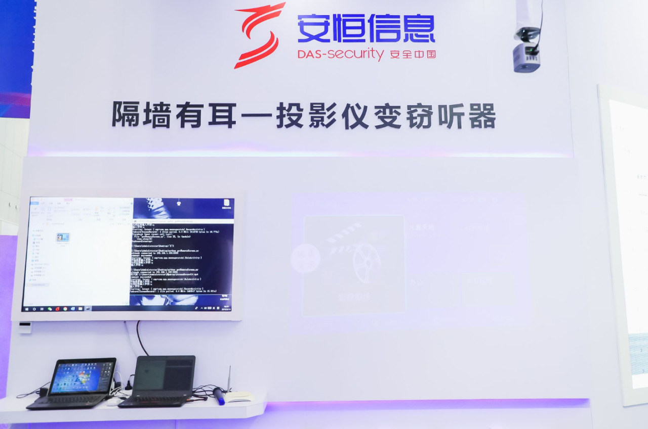 在安恒信息展台,安恒信息技术人员将为观众演示“隔墙有耳”——投影仪变窃听器技术。一台普通的投影仪,在用户正常使用过程中,安恒信息工作人员通过输入攻击脚本,模拟黑客采用渗透攻击的方式,对投影仪进行视频窃取,达到远程监听的效果。