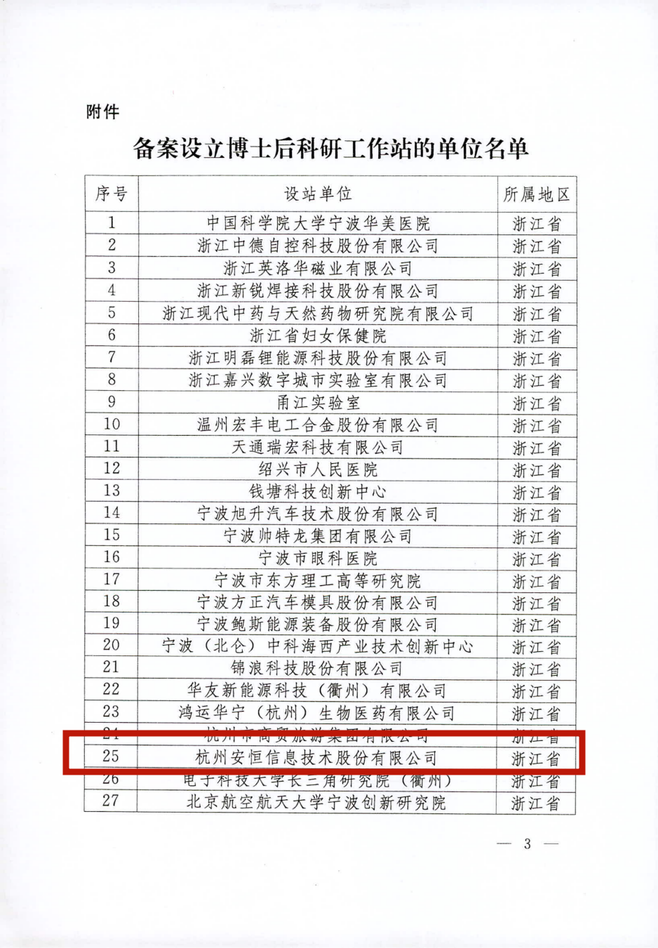 近日,全国博士后管委会办公室印发了《关于2022年第二批次博士后科研工作站新设站备案情况的函》(博管办〔2023〕97号),安恒信息博士后科研工作站正式升级成为国家级博士后科研工作站。