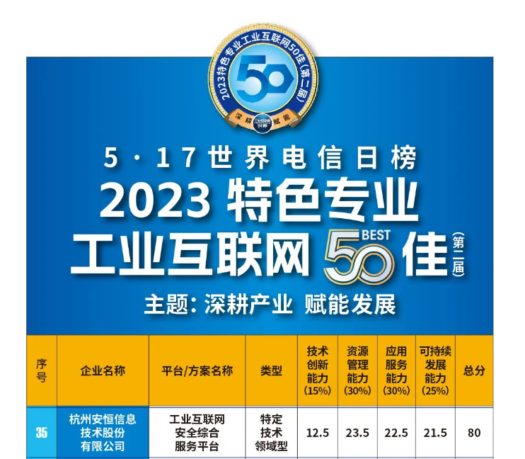 再获认可!安恒信息入围2023特色专业工业互联网50佳
