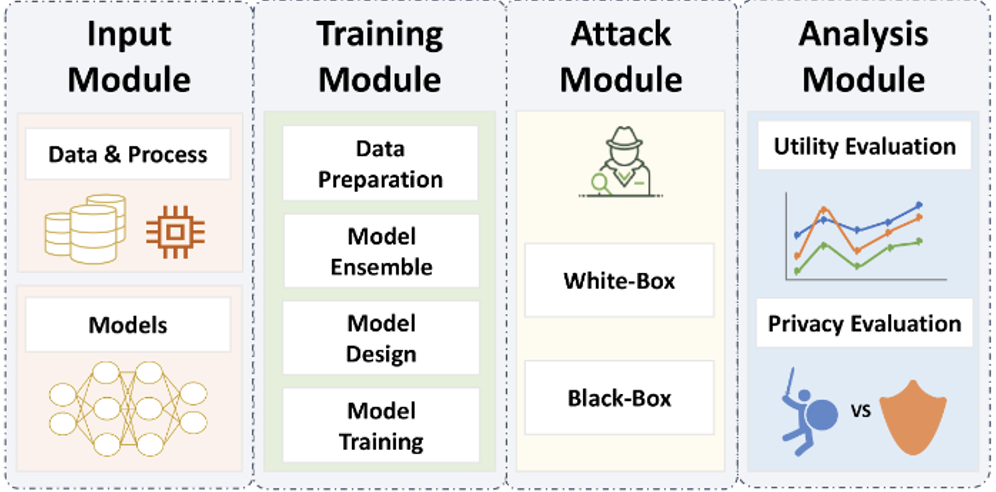 本论文首先依据机器学习训练流程针对DPML算法提出了一种分类方法,从而为细致分析不同类别的算法提供了便利。其次对先进的DPML算法的模型性能和对成员推理攻击的防御能力进行了大量的实验测量,得出了众多有利于业界后续研究的结论。同时本论文还提出并实现了一个模块化可重复使用的测试平台,DPMLBench,能够方便地使用和扩展差分隐私算法,方便隐私数据所有者可以轻松部署差分隐私算法,也可以作为相关领域用户的评估工具。