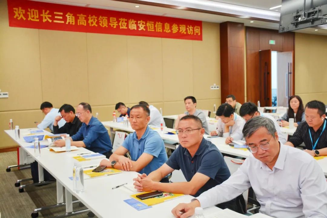 上午10:30,在高级副总裁、首席人力官冯旭杭,高级副总裁、首席人才官苗春雨,副总裁、安恒团委副书记吴澄的陪同下,长三角高校就业部门负责人等一行参观了安恒安全创新体验中心。