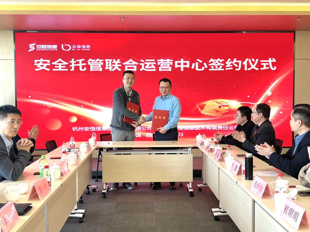 3月11日,安恒信息与陕西北佳信息技术有限责任公司(以下简称“北佳信息”)正式签订合作协议书,双方将聚焦安全托管运营服务领域展开合作,建设联合运营中心。