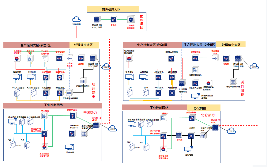以“安全先行、智慧管理”为核心,构建一个覆盖明州热电、溪口储能、宁波热力、北仑热力四大电厂的安全防护体系。宁波能源“工控安全大脑”,集成了最先进的大数据分析、人工智能和机器学习技术,构建了一个实时监控、智能预警的安全防护体系。