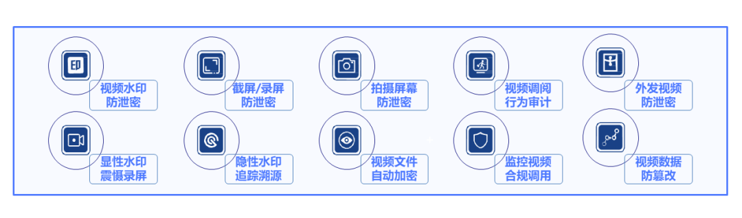 通过透明加密技术,对保存在本地的视频文件进行透明加密,文件外泄后自动销毁,并且支持防泄密水印功能,对截屏/录屏行为直接进行进程阻断,针对通过拍摄手段泄密的情形进行追溯。